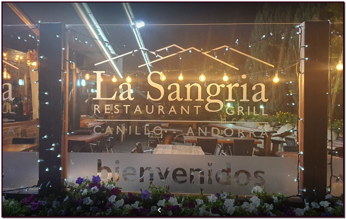 RESTAURANT GRILL LA SANGRIA. EL PARADÍS DELS AMANTS DE LA CARN a ANDORRA. RESERVES: només per telèfon al (+376) 851327. Restaurant La Sangria de Canillo és un restaurant d’Andorra ideal per als amants de la carn, on si alguna cosa cal destacar, són les seves carns a la brasa i la “descomunal” mida dels chuletons XXXXL.